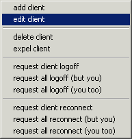 When you modify an entry of a client, and the client is online, it is requested to automatically log back in, so that updates get properly propagated to all clients (version 1.0 did not do this). If you delete a client, it gets expelled if it is online.